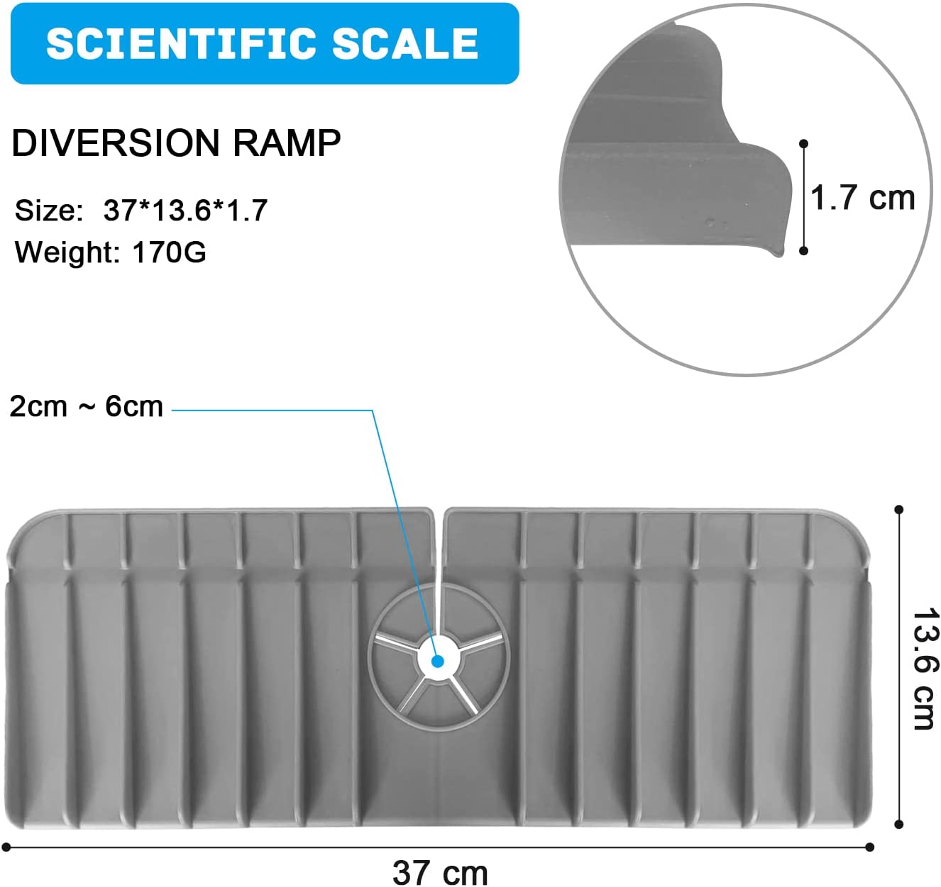 - Easy to Use: With a size of 36.5×12.5×0.8cm and a 2.6cm adjustable round hole in the middle, you just snap the faucet into the round hole and place the mat under the faucet. It’s suitable for kitchen sinks, bathroom vanities, restaurants, hotels, and wherever you need it.