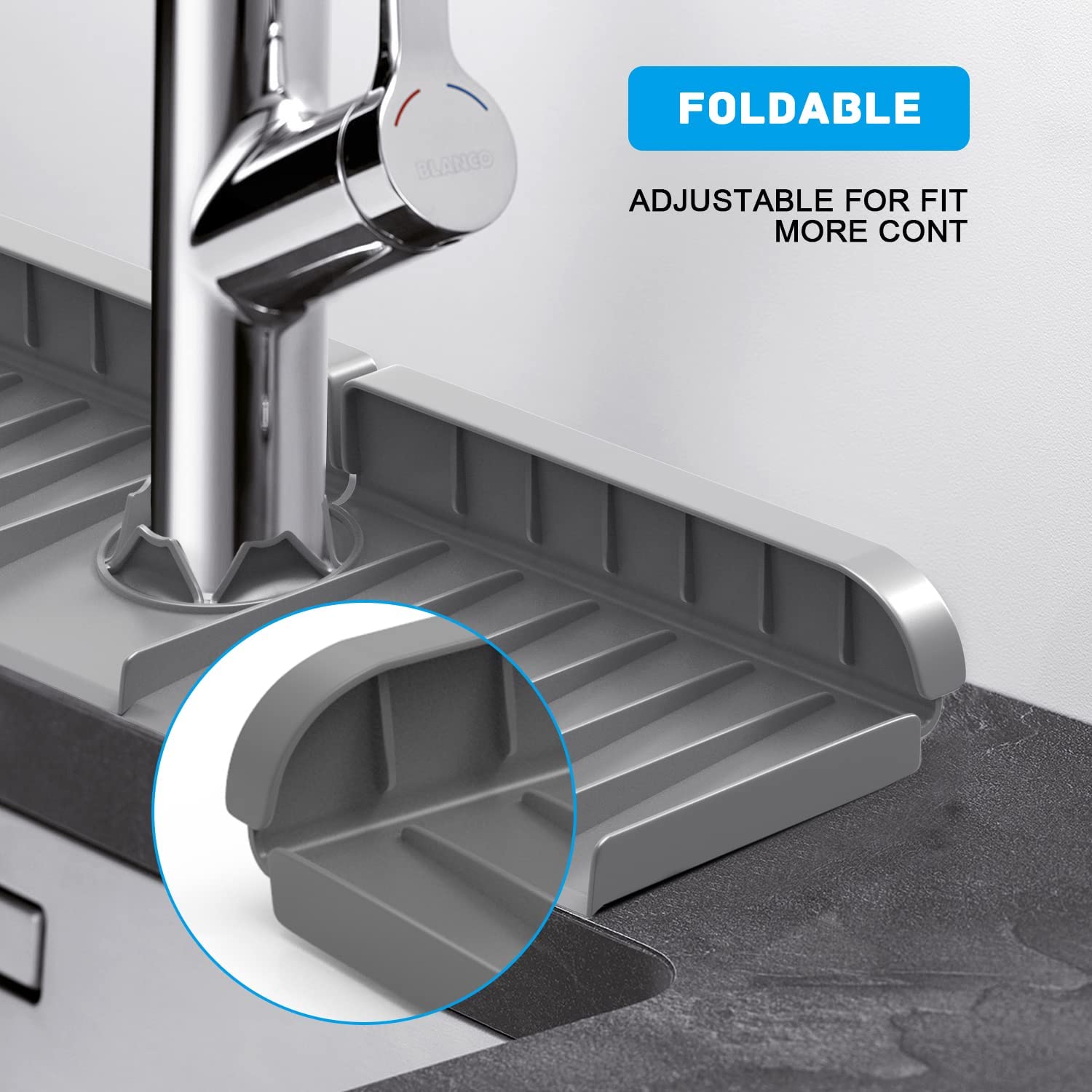 - Upgraded Design: Our newly redesigned faucet drain mat, made from high-quality silicone, is durable and not easily deformed. It features a specifically designed cut for the faucet base and a sloping reverse design for better draining compared to older products.